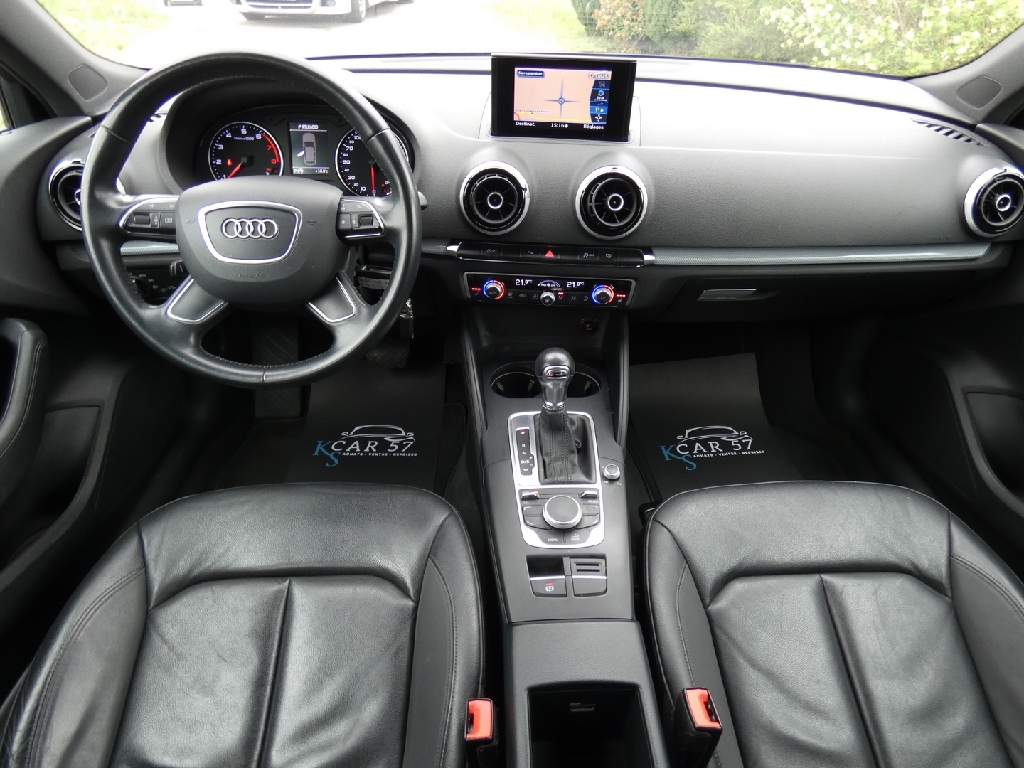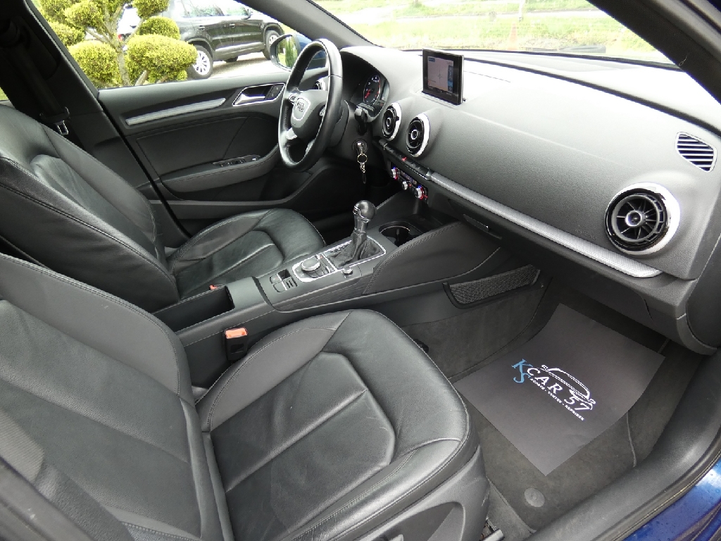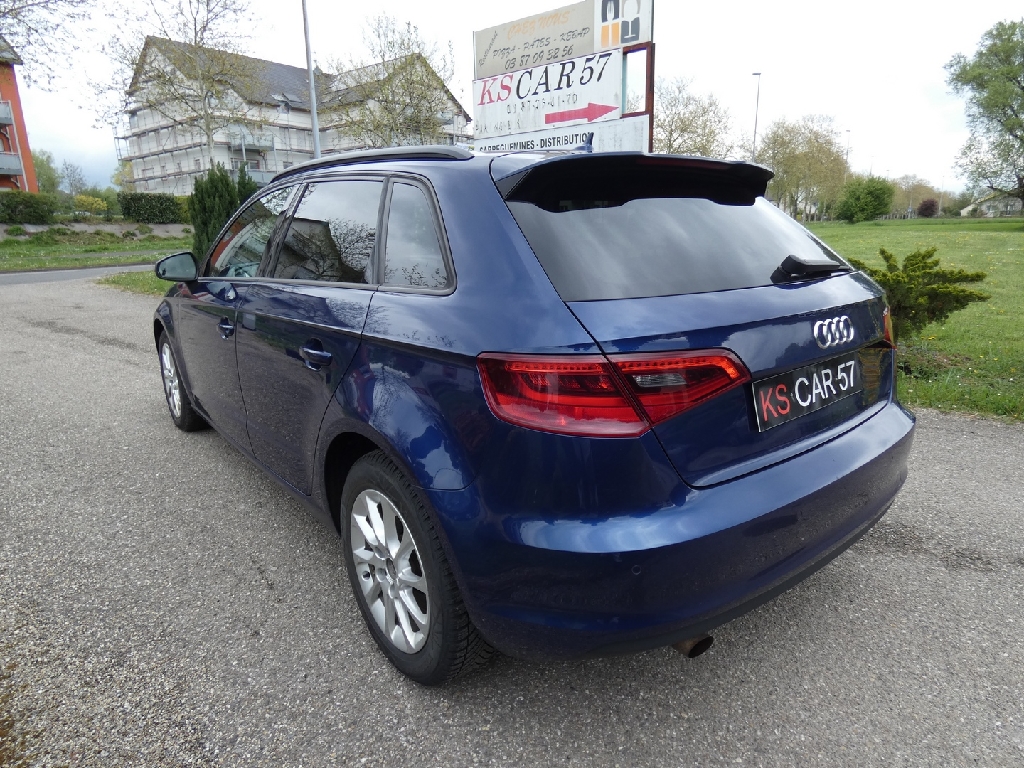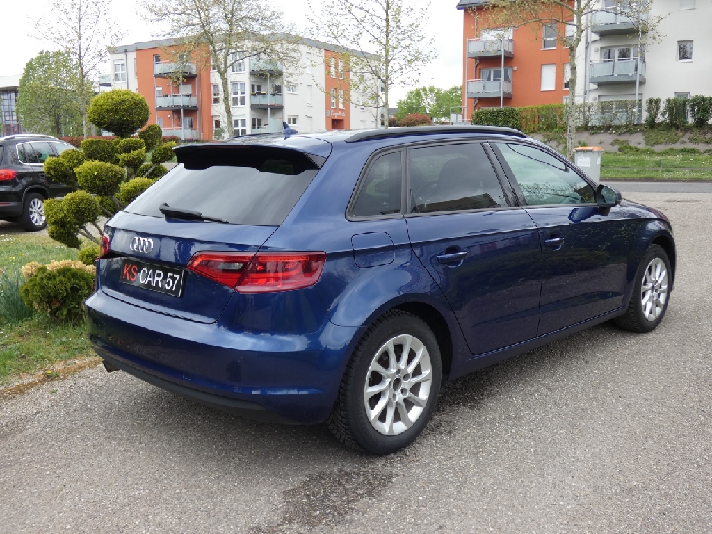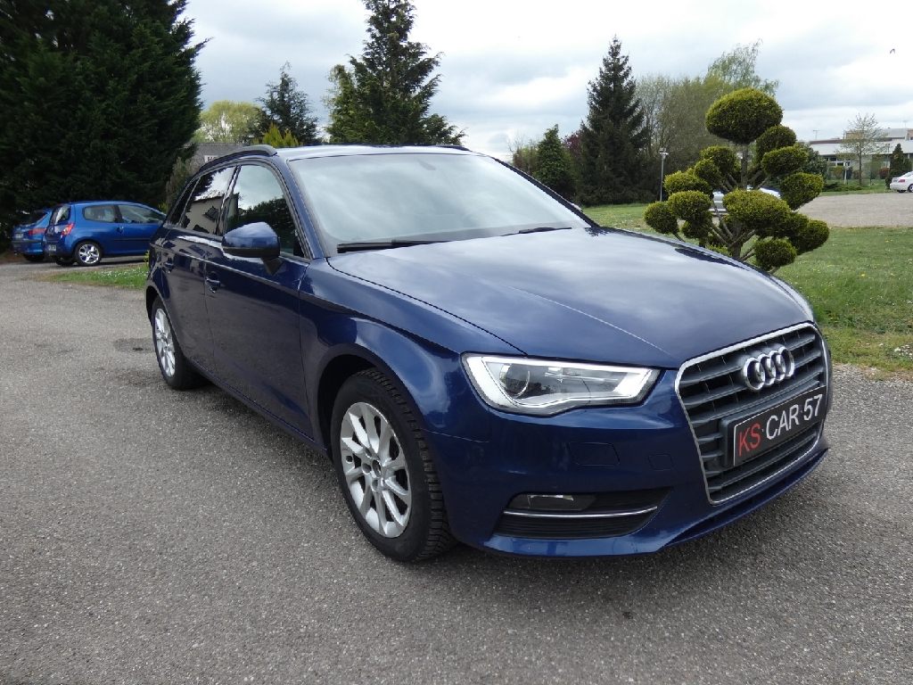 1.2 TFSI 110 Attraction S tronic 7, essence, bleu métallisé, 29/07/2015, Audi A3 sportback 1.2 TFSI 110 Attraction S tronic 7 berline, bleu métal, 6 cv, 5 portes, première mise en circulation le 29/07/2015, garantie 12 mois., **************************, (En face de la nouvelle gendarmerie), ***************************, HORAIRES D'OUVERTURES, LUNDI AU VENDREDI, 9H A 12H00 14H00 A 18H00, SAMEDI 9H00 A 14H00, 5 places, OPTIONS ET EQUIPEMENTS :, Extérieur :, phares xenon, phares à LED, Intérieur et confort :, bluetooth, climatisation automatique, Sécurité :, direction assistée, fermeture centralisée, ABS, ESP, radar avant de détection d'obstacles, fixation ISOFIX, régulateur de vitesse, limiteur de vitesse, Autres équipements et informations :, kilométrage garanti, puissance réelle : 110 ch, nombre de rapports : 7 vitesses, émission CO2 : 110 g/km, radar d'aide au stationnement, Puissance kilowatt : 81 kw, Navigation, Prise media, Vitre électriques, 5 places, Interieur cuir, Sièges chauffant, Airbags, Garantie 12 mois, ************************, Les options sont sous réserve d'erreur ou d'oublie, dans l'annonce, KS CAR 57, 43 RUE DU CHAMPS DE MARS, 57200 SARREGUEMINES, Référence annonce : 645VO001017
