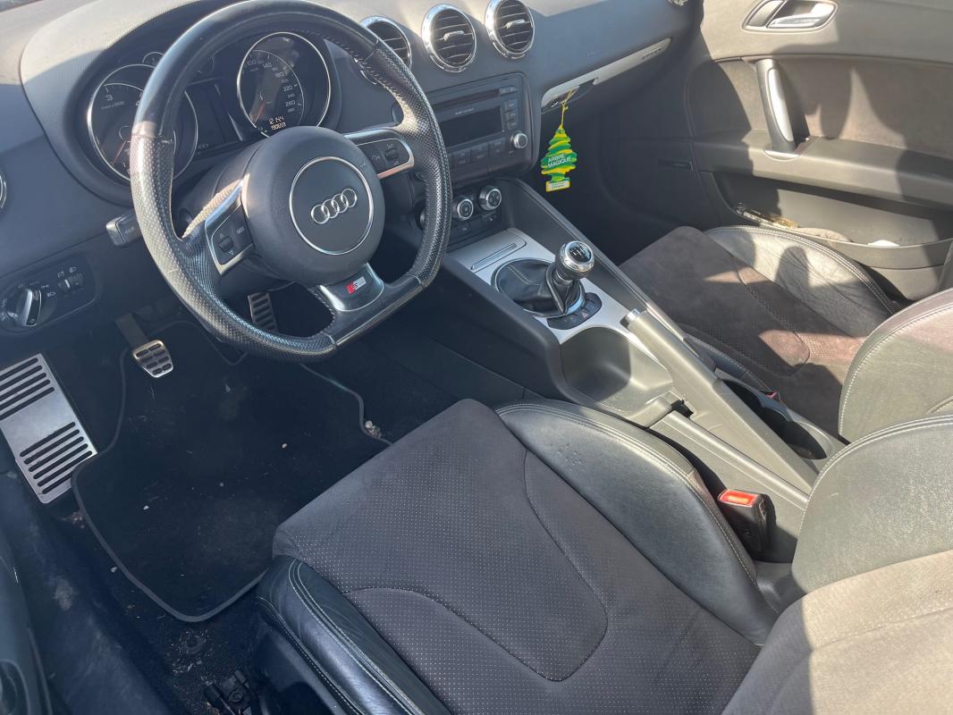 2.0 TDI 170 Quattro, diesel, gris foncé, 02/03/2011, Airbag passager desactivable, Airbags grand volume conducteur et passager AV, Airbags lateraux AV integres aux dossiers des sieges, Antenne radio souple fixee sur l'aile AR gauche, Arceaux de securite de couleur noire, ASR : antipatinage, Audi Backguard, Autoradio Chorus avec lecteur simple CD memoire pour 12 stations, reception FM et AM (MO), clavier a touches douces et ecran de trois lignes, reseau CAN-Bus, reglage du volume sonore asservi a la vitesse, phases diversifi ees, 4 haut-parleurs passifs, puissance totale 40 watts, Avertisseur 2 tons, avecmande au centre du volant, Bande grise anti-eblouissement dans la partie superieure du pare-brise, Boite a gants cote passager, verrouillable avec eclairage et etui a lunettes, Carrosserie : architecture Audi Space Frame ASF, Catadioptres des portieres passifs, protection contre les vehicules venant de l' AR, Ceintures de securite : 3 points a enrouleur a toutes les places, avec pretensionneurs et limiteurs, Chassis Sport, avec reglage dynamique des ressorts et des amortisseurs, Colonne de direction de securite, Controle de pression des pneumatiques, Detecteur de pluie et de luminosite, Ecrous antivol, EDS: Blocage electronique de differentiel et aide au demarrage, ESP, Feu AR de brouillard, integre au centre dans le bouclier AR, Feux stop : 3eme feu stop a diodes, Indicateur de temperature exterieure, Lave-essuie-glaces 2 vitesses, intermittence reglable a 4 positions avec reglage asservi a la vitesse,mande de fonctionnement coup par coup et de lavage- balayage automatique, balayageplementaire automatique 5 secondes environ apres le dernier fonctionnement, Lunette AR degivrante, avec minuterie et antenne de vitre integree, Miroir de courtoisie eclaire sur le pare-soleil cote conducteur et passager AV, Outillage de bord dans le coe, Phares : phares principaux ellipsoidaux sous verre transparent, style tridimensionnel, Phares anti-brouillards en verre transparent, projecteurs halogenes integres dans le bouclier AV, Plafonnier a temporisation avec contacteur sur toutes les portieres; eclairage cote passager, Porte-boissons double sur la console centrale, Protection antidemarrage electronique, activation automatique au moyen de la cle du vehicule, Protections laterale anticollision, Radio Chorus + 4 HP (2 AV/AR), puissance totale 40 W, Retroviseur interieur jour/nuit, Retroviseurs exterieurs reglables electriquement aspherique a gauche, convexe a droite, boitiers laques dans la couleur de carrosserie, avec clignotants lateraux a diodes integres, Retroviseurs exterieurs reglables electriquement, Sellerie mixte Cuir/Alcantara, Signal sonore pour oubli d'extinction des feux, instrumentation avec eclairage reglable en continu, Sortie d'echappement double a gauche, Spoiler AR retractable asservi electriquement a la vitesse, Tableau de bord capitonne, avec visiere noire au-dessus des instruments, Telmande a radiequence pour le verrouillage centralise, Trappe a carburant en aluminium avec estampillage TT, Triangle de presignalisation, Trousse a pharmacie, Vitres athermiques teintees vertes et pare-brise en verre feuillete, Alarme antivol incluant protection volumetrique et protection antiremorquage, desactivable, Bose Surround Sound, Chassis sport S line, Filet anti-remous electrique, Fixation Isofix pour siege passager, Levier de vitesses raccourci, Pack Eclairage, Preparation pour telephone 2W bi-bande (D et E)mande sur volant multifonction, main libre, interface Bluetooth. Neprend pas de support pour adaptateur ni dantenne exterieure., Radar de recul, Radio Concert,me autoradio Chorus maispatible MP3, incluant amplificateur 5 canaux et 9 HP a ctifs puissance totale 140 W, Retroviseurs exterieurs jour/nuit automatiques, electrique, escamotables et degivrants buses de lave-glaces chauffantes, Sieges AV chauffants, Volant Sport multifonction en cuir 3 branches