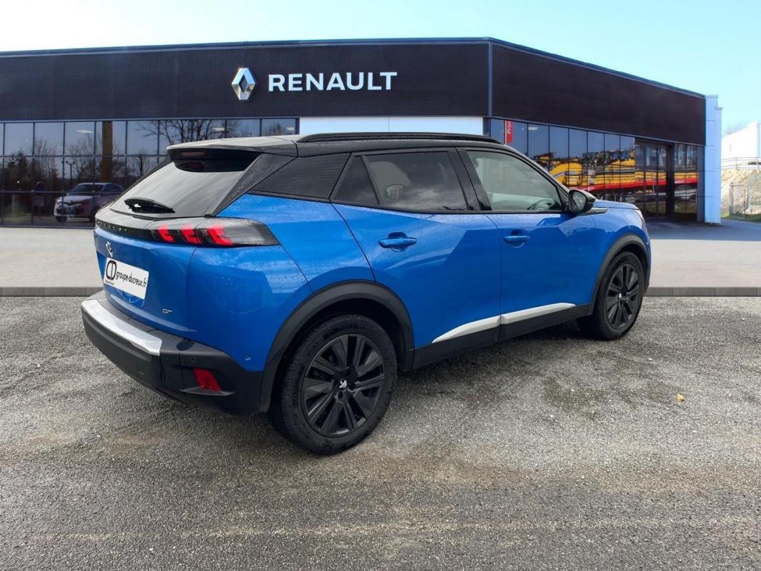 Moteur électrique 136 ch GT, électrique, bleu clair, 30/05/2020, Sièges AV chauffants, Volant réglable en hauteur et en profondeur, Direction assistée électrique, Lève-vitres électriques AV et AR séquentiels avec antipincement, Hill Assist, Pédalier Sport aluminium, Détection de sous-gonflage indirecte, Commande d'ouverture extérieure couleur caisse, Régulateur / Limiteur de vitesse, Avertisseur de temps de conduite, Allumage automatique des feux de croisement, Verrouillage automatique de tous les ouvrants en roulant, Essuie-vitre AV à déclenchement automatique, Sélecteur mode de conduite, Filets aumônières au dos des sièges AV, Habitacle et ciel de pavillon noir, Commutation automatique des feux de route / feux de croisement, Frein de stationnement électrique avec aide au démarrage en pente et serrage automatique, Barres de toit longitudinales Noir Brillant, Becquet AR Noir Brillant, Système actif de surveillance d'angle mort, Pack Drive Assist Plus, Visio Park 1 + aide graphique et sonore au stationnement AV, Toit Black Diamond, Accès et démarrage mains libres Proximity, Air conditionné automatique monozone, Fonction DAB, Siège passager AV à réglage manuel en hauteur, Appuis-tête réglables en hauteur AV et AR, Ceintures de sécurité AV conducteur et passager à enrouleurs pyrotechniques avec limiteurs d'effort et détection de non bouclage, Ceintures de sécurité AR latérales avec enrouleurs pyrotechniques, limiteurs d'effort et détection de non bouclage, Programme de Stabilité Electronique avec ASR, ABS, REF, AFU, CDS et TSM, Chargeur embarqué 7, 4 kW monophasé, Coques de rétroviseurs extérieurs Noir Brillant, Lécheurs de vitres latérales Noir Brillant, Planche de bord slush surpiquée et panneaux de portes AV avec décors aspect carbone et éclairage polyambiant 8 couleurs, Surtapis AV et AR noirs avec surpiqures Vert Adamite, Volantpact cuir fleur avec laçage vert, Lion chromé et badge GT etmandes multimédia sur volant, Eclairage polyambient 8 couleurs, 4 poignées de maintien, Rétroviseur intérieur photosensibleameless, Siège conducteur avec réglage manuel en hauteur, Rétroviseur intérieur photosensible et rétroviseurs extérieurs dégivrants avec réglage et rabattement électriques, Projecteurs antibrouillard à LED avec fonction cornering, Jantes alliage 18'' BUND diamantées bi-tons Noir Onyx et vernis brillant, Teinte métallisée Orange Fusion, Plancher de coe standard + plancher de coe modulable, Navigation 3D connectée avec reconnaissance vocale, écran tactile capacitif 10" HD, PEUGEOT Connect SOS & Assistance et Teleservices, Airbagsontaux auto-adaptatifs, latéraux AV, rideaux AV, Ceintures AR centrale 3 points avec détection de non bouclage, Eclairage extérieur d'accueil et d'apagnement, Fixations suivant norme ISOFIX et Top Tether avec étiquettes de localisation aux places latérales AR, Fixations suivant norme ISOFIX et Top Tether avec étiquette de localisation sur siège passager AV, Kit de dépannage pneumatique avec conditionnement rigide, Projecteurs Peugeot Full LED Technology avec signature 3 griffes, indicateurs de direction à LED, Feux diurnes à LED sous projecteurs, Feux AR 3 griffes à LED, Câble électrique mode 2, prises de charge T2/EF type Green'up, Calandre avec grille supérieure noir grainée et marquage horizontal couleur caisse, grille inférieur avec décor Métallure, enjoliveur supérieur couleur caisse, Lion dichroïque, Coques de rétroviseurs extérieurs avec répétiteurs latéraux à LED, Enjoliveurs de custode Noir Brillant avec sérigraphie, Enjoliveurs de seuil de coe Métallure, Katana avec marquage "e", Passages de roues Noir Mat, Protections latérales de portes Noir grainées avec inserts Métallure, Commandes d'ouverture intérieure de portes chromées, Panneaux de porte AV avec poignée moussée, Seuils de portes AV en inox avec marquage PEUGEOT Noir, Console haute avec accoudoir intégré, Eclairage de coe à ampoule, Eclairage intérieur à LED : plafonniers tactiles AV, miroir de courtoisie dans pare-soleil, cave à pieds, Pare-brise teinté acoustique sérigraphié bi-couches, Peugeot i-Cockpit 3D avecbiné tête haute numérique 3D 10'', Banquette rabattable 1/3 - 2/3, Fonction Bluetooth et Mirror Screen, 6 haut-parleurs, Vitres latérales AR et lunette AR chauffante temporisée surteintées, Sellerie Alcantara Gris Gréval / TEP, surpiqures Bleu Cyan et Vert Adamite, Airbagsontaux, latéraux AV, rideaux AV, Jantes alliage 18'' BUND diamantées bi-tons Noir Onyx et vernis brillant cabochons et vis Noir Onyx, inserts Gris Storm mat, Teinte métallisées Orange Fusion