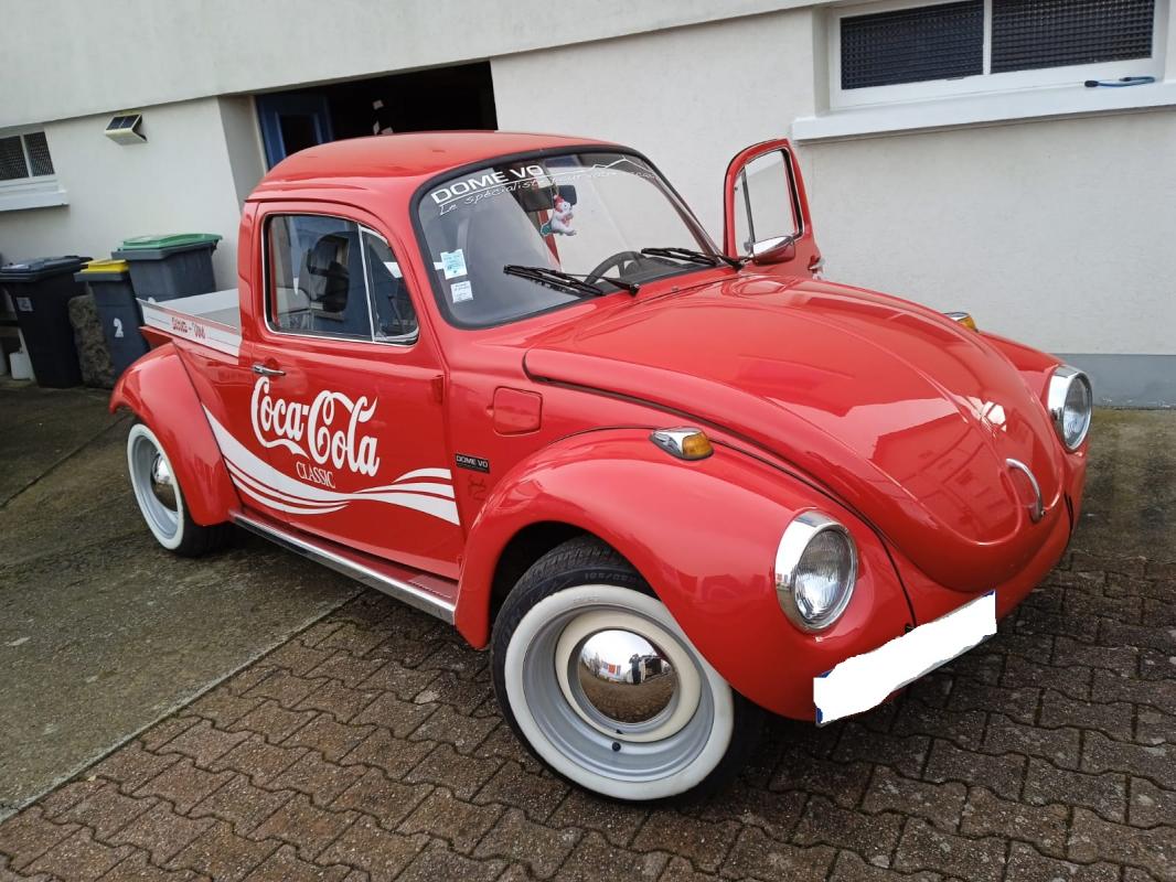 Pick up Coca Cola, essence, rouge, 01/01/1973, Découvrez en exclusivité sur VEITURA cette très belle Coccinelle Coca Cola de 1973. Visible près de Clermont, sa carrosserie a été restaurée notamment la peinture pour pouvoir être aujourd’hui revendue dans un état impeccable. Une voiture de collection atypique sur VEITURA Cette voiture se trouve dans un très bon état global. Elle a subi une restauration de sa carrosserie (peinture) par un professionnel. Elle est équipée d’un moteur Volkswagen, ainsi que d’une boîte manuelle quipte 4 rapports. La carrosserie rouge est donc dans un très bon état, toutme l’intérieur noir en simili-cuir. Les pneus actuels sont dans un bon état également, vous n’avez pas besoin de les changer. Le véhicule neporte pas de trace de corrosion et n’a jamais été accidenté. Cette voiture neporte que des pièces d’origine, et a obtenu son contrôle technique il y a moins de deux ans. Histoire de la Coccinelle La Coccinelle a été fabriquée pour la première fois en Allemagne par le constructeur allemand Volkswagen (qui signifie “voiture du peuple”). L’idée est venue d’Adolf Hitler, qui voulait concevoir une voiture bon marché que tout le monde pourrait s’oir. Cette voiture était populaire parce qu’elle était fiable pour les longues distances et n’avait pas besoin de beaucoup d’entretien, grâce à son système de roidissement par air qui était très efficace. Malgré cela, le design a changé au fil des ans, le dernier modèle ayant été produit au Mexique en 2003 Cette voiture a été créée dans une logique de réindustrialisation de l’Allemagne après la première guerre mondiale. Hitler voulait produire une voiture fiable, concurrente directe de la Ford américaine. C’est un succès au vu de la longévité de la Coccinelle. Aujourd’hui, cette voiture est la plus collectionnée dans le monde !